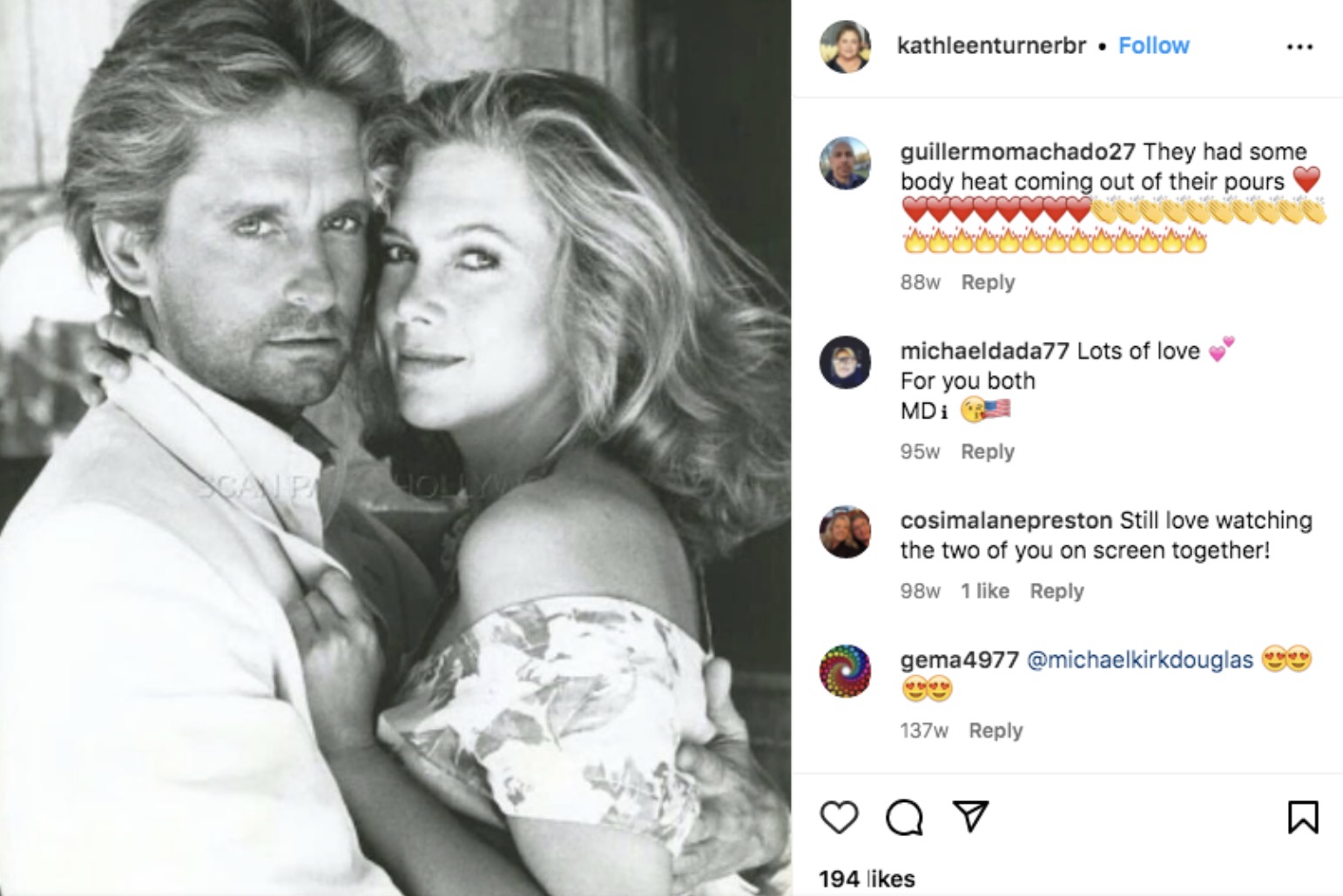 Three years after starring next to William Hurt, Turner was given a chance to co-star with Michael Douglas in the famous “Romancing the Stone.” Douglas was in a rocky separation from his wife Diandra at the time of filming, and he and Turner developed some feelings for each other.