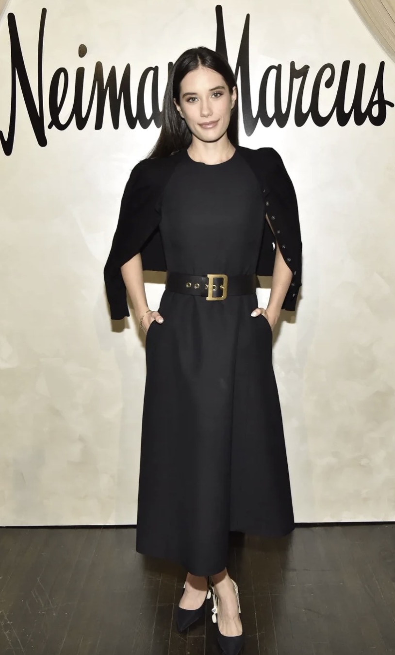 At the recent party, she donned a black, understated dress, accentuating her waist with a Dior belt. Adding an intriguing touch to her look, Ella threw a knitted cardigan with buttons over her shoulders. While it may appear as a dress with a cape, it’s a regular cardigan, showcasing Ella’s sophisticated style.