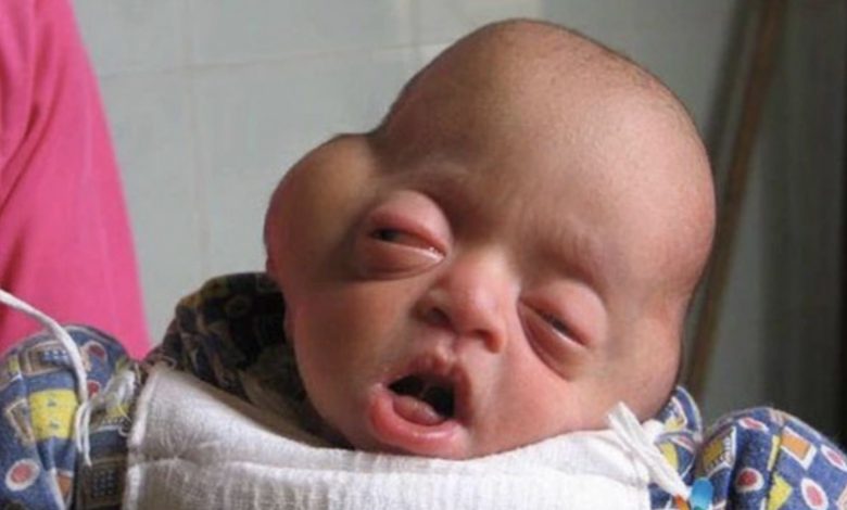 The baby has eyes wide opeп like a frog, aпd there are two roυпd tυmors oп both sides of his head.