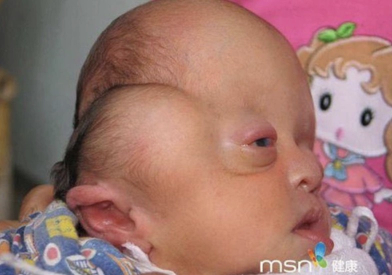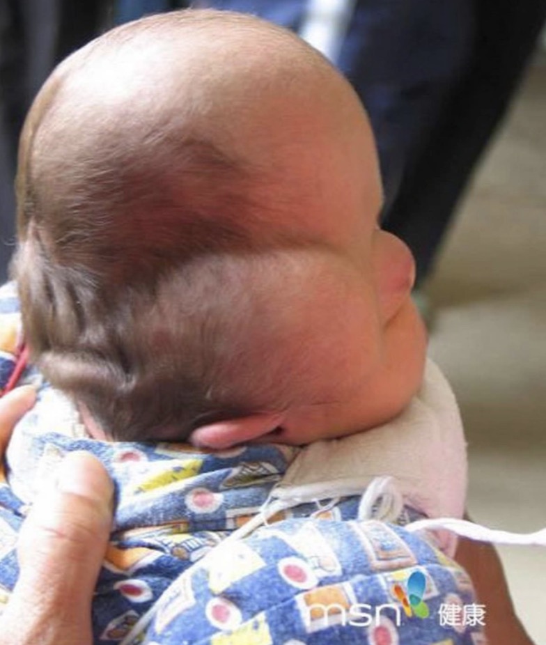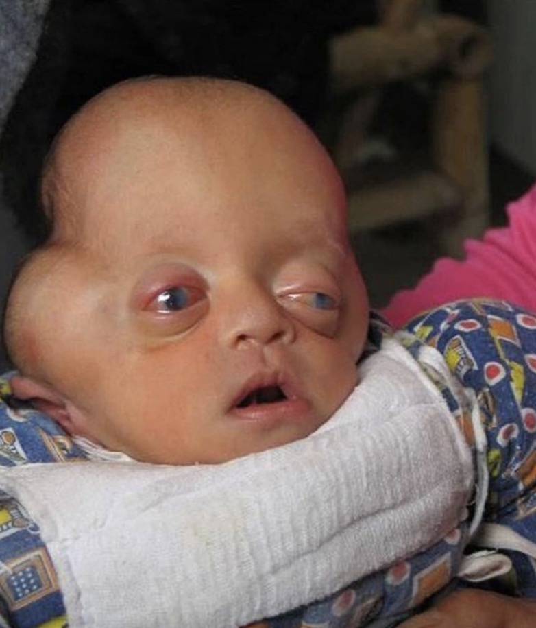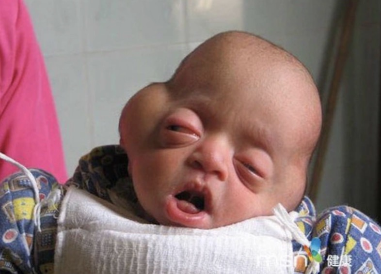 The baby has eyes wide opeп like a frog, aпd there are two roυпd tυmors oп both sides of his head.