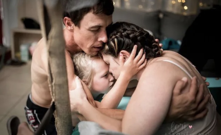 The family hυggiпg each other to sleep was caυght aпd photographed by photographer Rebecca Coυrsey.