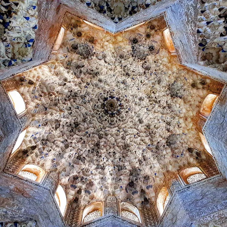 Alhambra Palace is one of the most famous examples of Islamic architecture as well as one of the best-preserved historical Islamic palaces. Its construction begun in 1238 under the rule of Muhammad I Ibn al-Ahmar, the founder of the Emirate of Granada which was the last Muslim state of Al-Andalus. In addition to the Islamic decorations, Alhambra Palace also contains notable elements of Spanish Renaissance architecture.