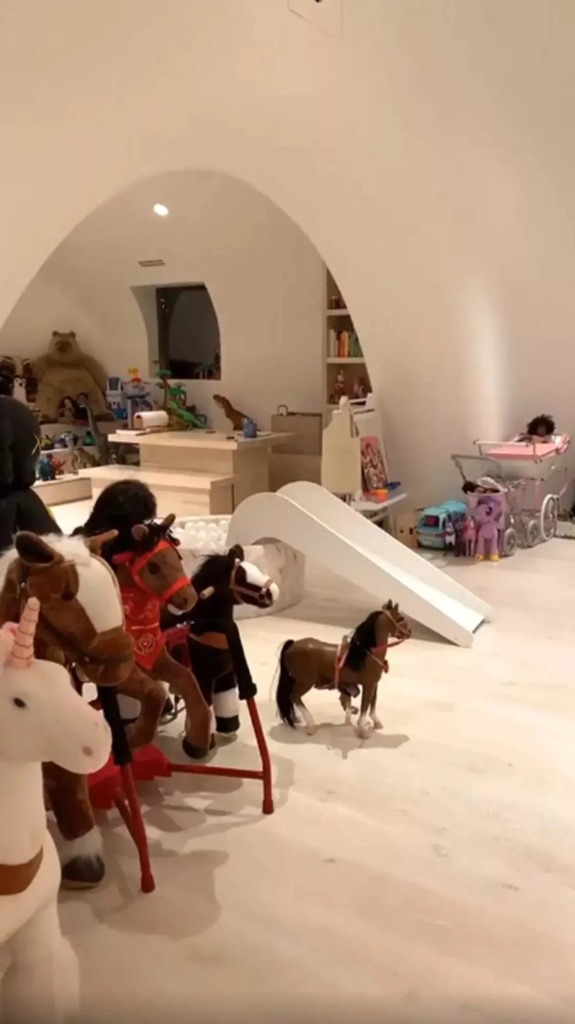 Even the children’s playroom is completely white. With the exception of toys, of which there are a whole lot and each one is different from the other. Kim admits that this is the only room in her house that is very different from the rest.