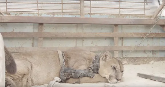 I love animals, and I can say with certainty that being chained up in the back of a pickup truck is no a place for an animal, especially not a full-grown mountain lion.