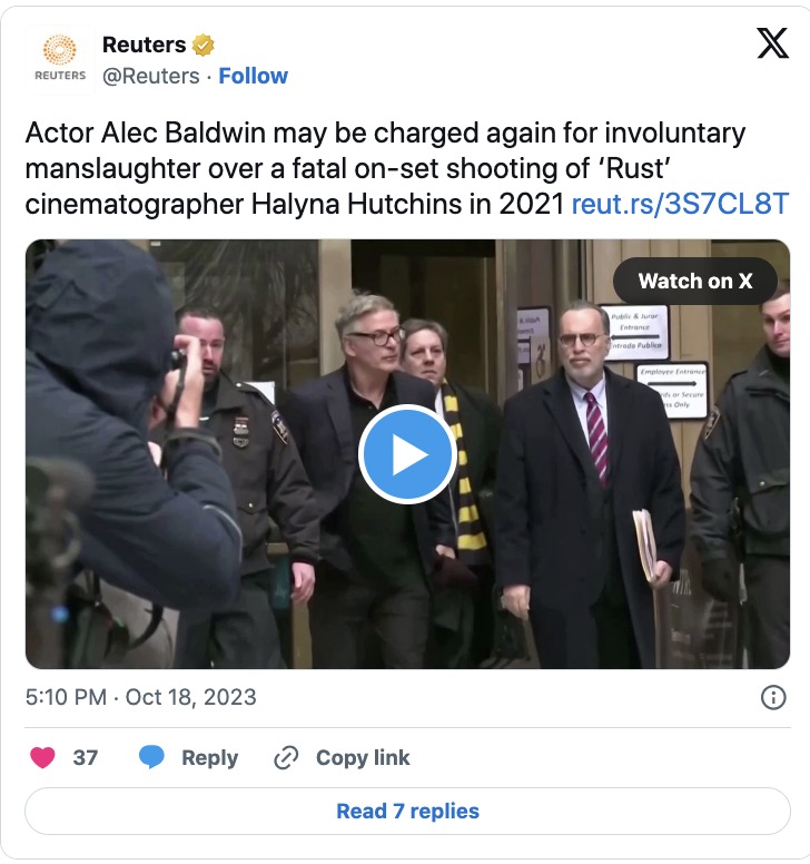 UPDATE: Alec Baldwin, the actor, has been charged with involuntary manslaughter in the shooting death of Halyna Hutchins by a grand jury in New Mexico.