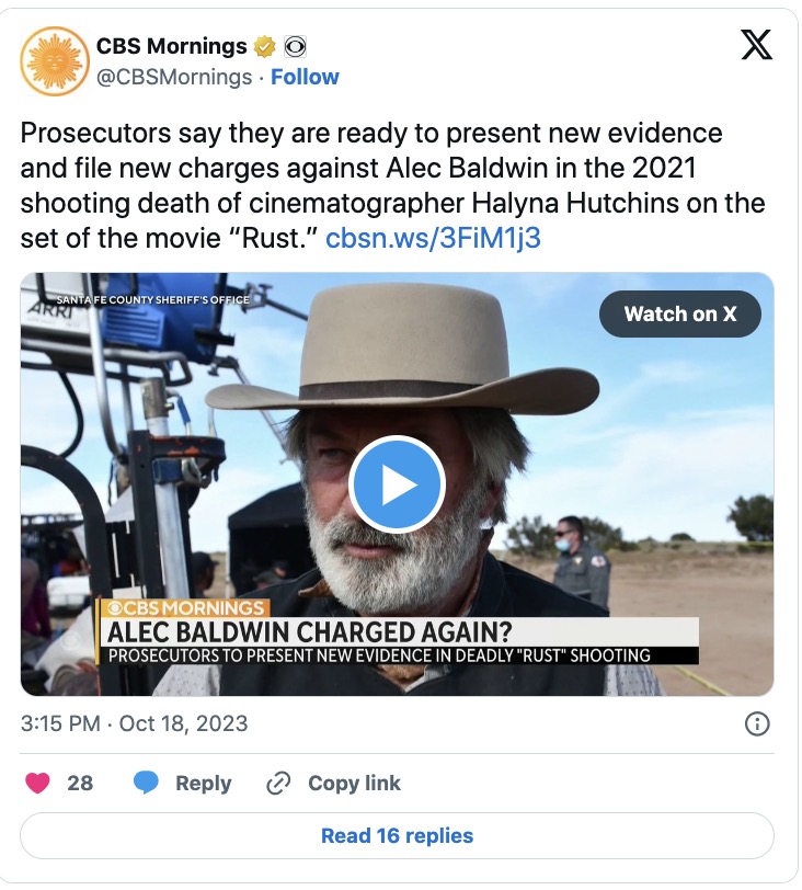 Of course, Alec isn’t the only one who is being charged with Hutchins’ death. Hannah Gutierrez-Reed, who played the armorer in the movie, is also being charged with killing without consent. Her trial is set for February 21, 2024. David Halls, who was the assistant director of the movie, agreed to a plea deal earlier this year.
