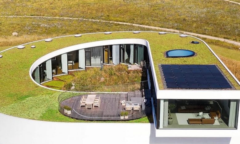 Designed by Bjarke Ingels Group, Villa Gug curves in a loop around the top of a small hill, framing a central courtyard that functions as a private garden. This snail-shaped dwelling in Aalborg, Denmark has been specifically configured to contain and showcase the client’s range of high-end automobiles. The form of the 750-square-metre building will create an extension of the driveway. The first section is proposed as a glazed garage that showcases the cars, but the loop then continues to provide the bedrooms and living spaces of the family home.