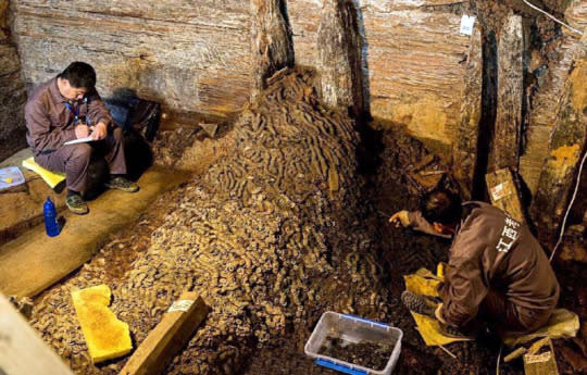 The coins discovered in the tomb date back to around 206 BC – when copper coins replaced the melted down tools.