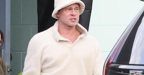 Brad Pitt Adds a Fuzzy Bucket Hat to His Trendy Monochromatic Distressed Ensemble