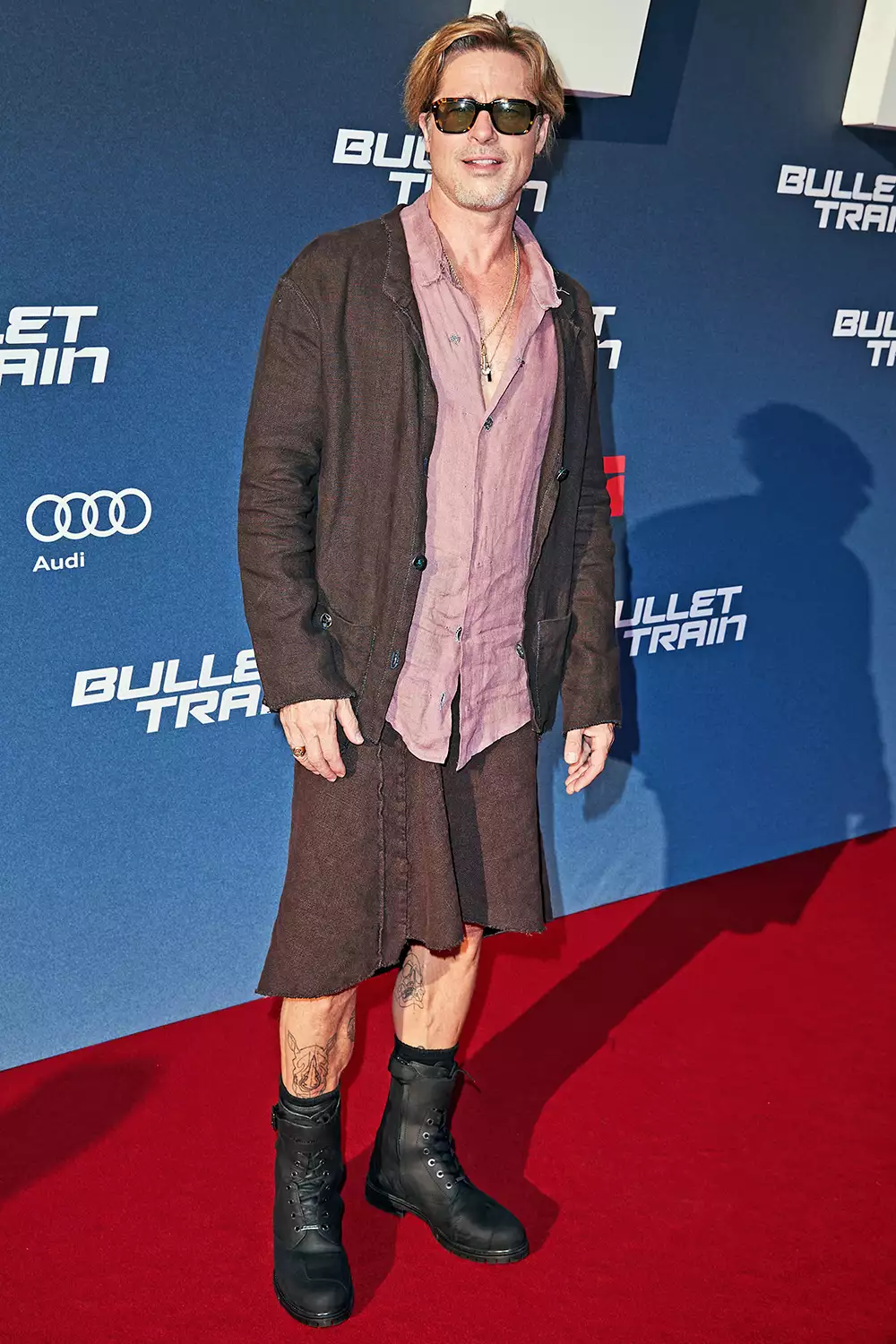 “We’re all going to die, so let’s mess it up,” he told Variety’s Marc Malkin after he chose to wear a skirt to the Bullet Train premiere in 2022. He wore a brown skirt with a matching jacket and a complementary salmon pink button-down shirt for the red carpet event.