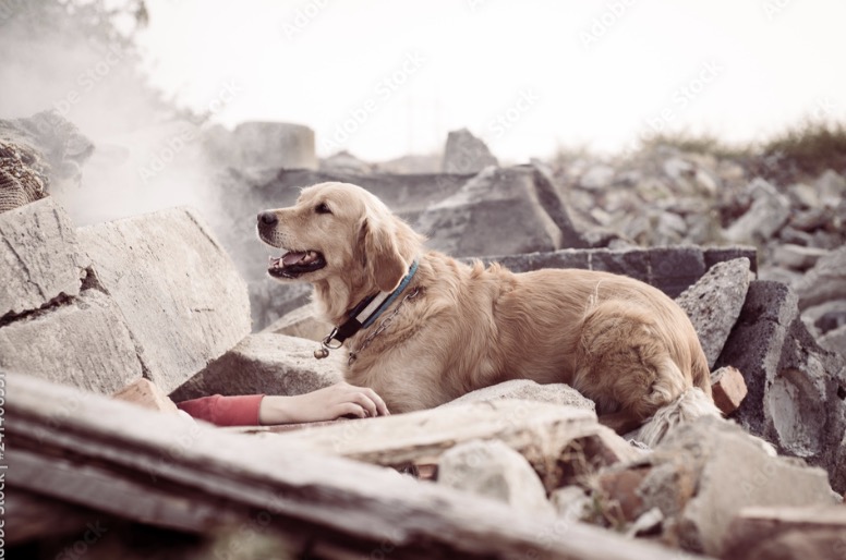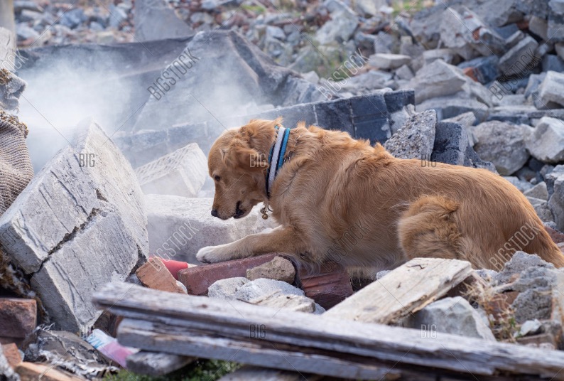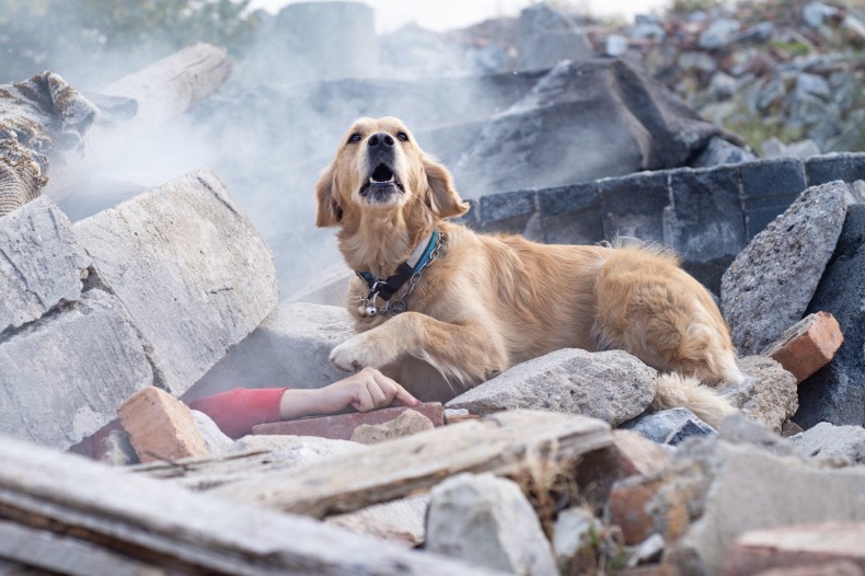The debris, once part of homes and livelihoods, becomes a race of obstacles for this furry hero. The dog’s acute senses, finely tuned to the smell of its human companion, guide it through the maze of fallen structures. Its eyes, filled with a silent plea for help, speak volumes about the urgency of the situation and the dire need for human intervention.