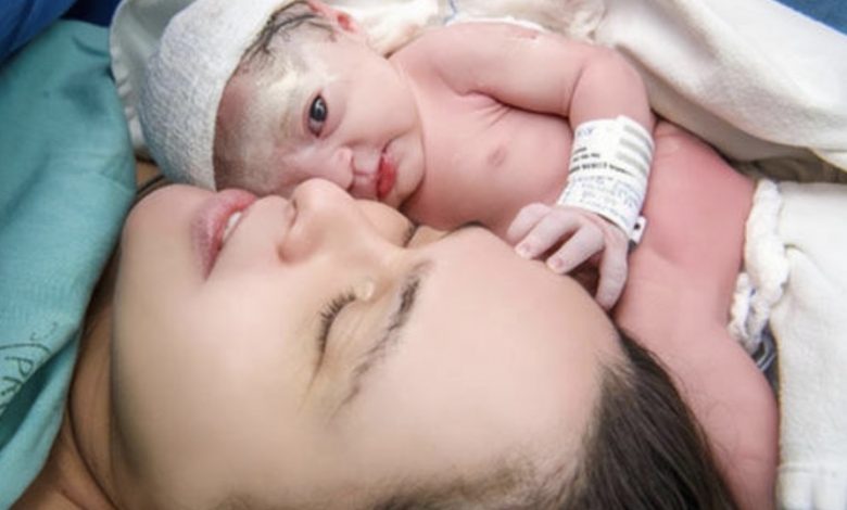 This is the tender moment a baby is born and places on his mum to meet herCredit: сoⱱeг Images LS