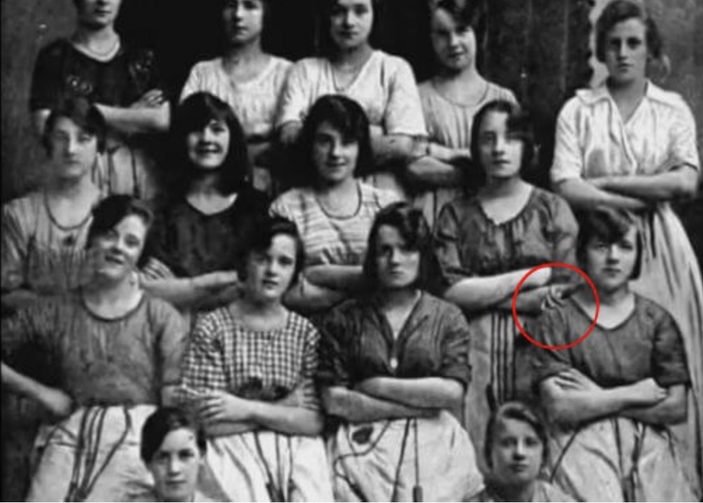 Lynda mentioned that her grandmother was employed at a factory during that period and is featured in the photograph, which is why she possesses the picture. Lynda’s grandma, Ellen Donnelly, is the second person from the right.