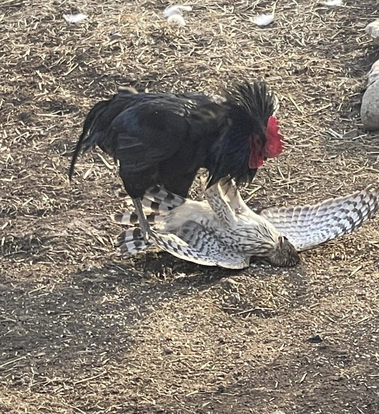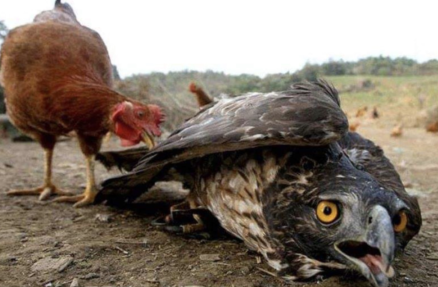 Ultimately, the eagle, perhaps exhausted or humbled by the rooster’s indomitable spirit, decided to abandon the fight and soar back into the open skies. The rooster, having defended his honor and territory, returned to the ground to the cheers and admiration of those who had witnessed the astonishing encounter.