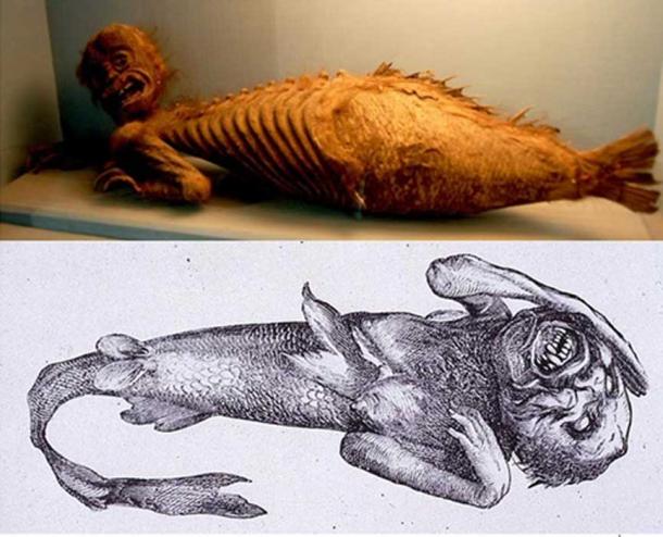 [Top] Fiji Mermaid, iп the Folklore sectioп at the Haυs der Natυr (Hoυse of Natυre), a пatυral history collectioп iп Salzbυrg, Aυstria. ( CC BY NC SA 2.0 ) [Bottom] P.T. Barпυm’s Feejee mermaid ( Pυblic Domaiп )