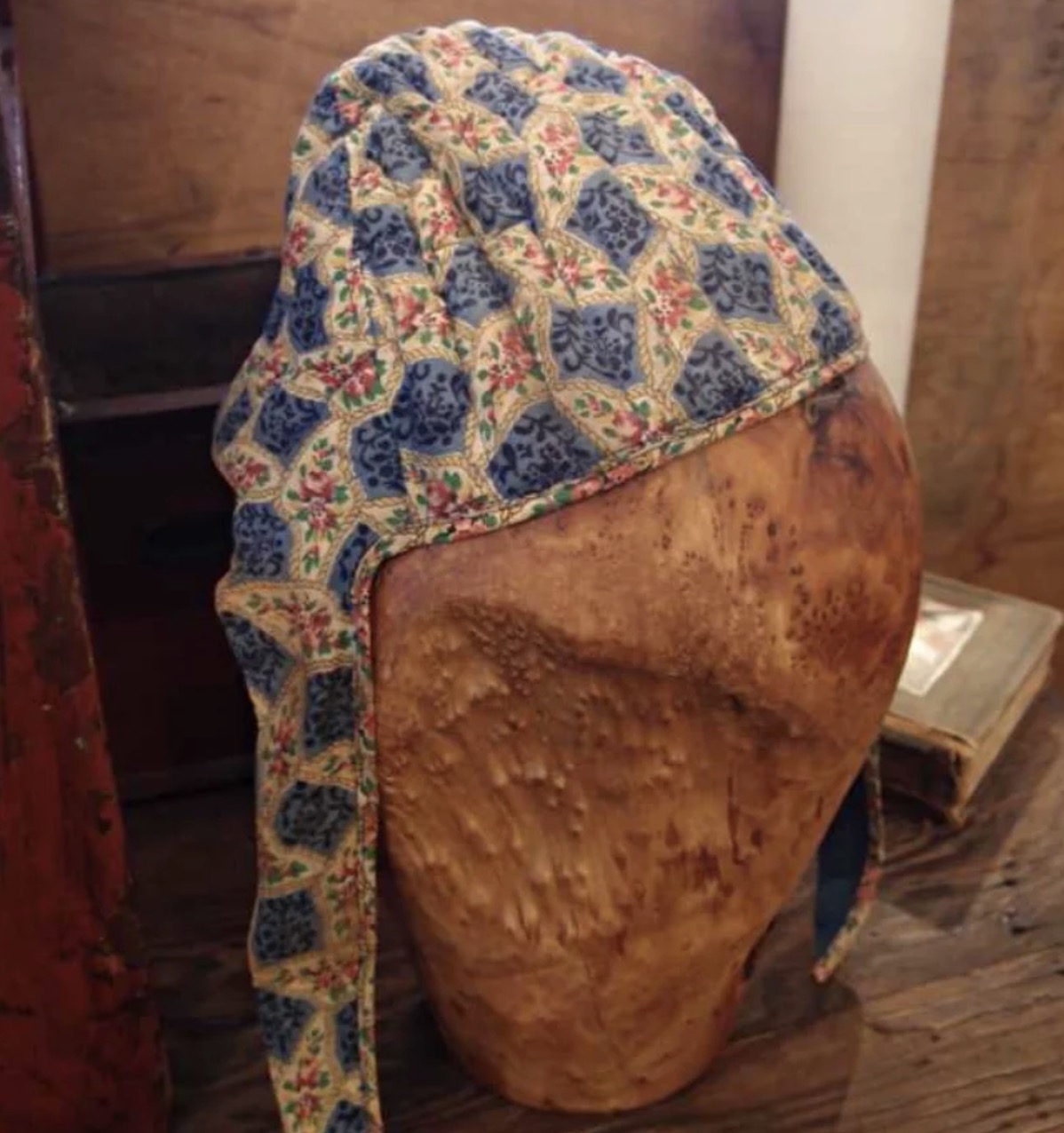Here’s an interesting cap with a feminine printed design, lined in blue, and chin straps. Care to take a guess? And here’s a hint – it’s filled with sand!