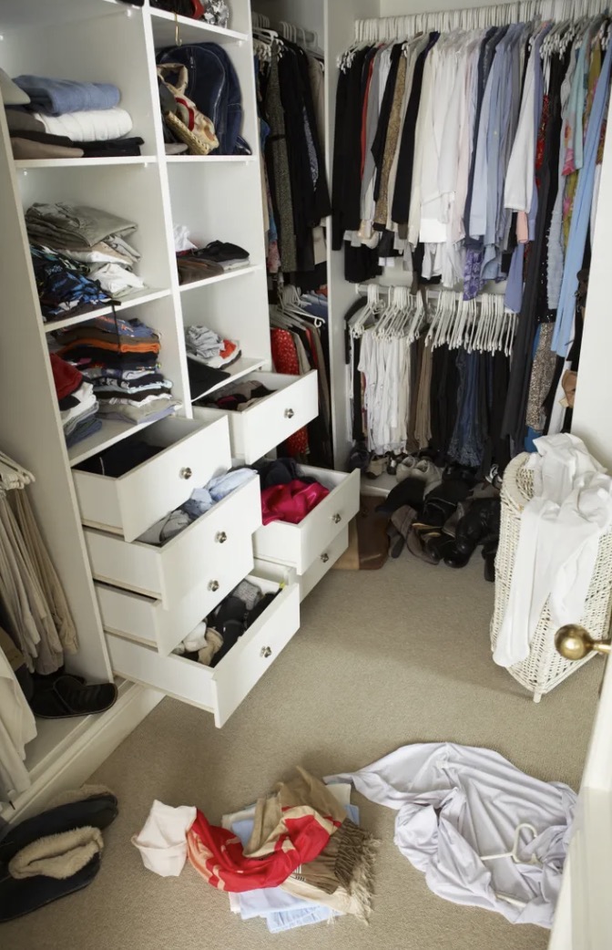 Shockingly, I discovered a hidden compartment in her wardrobe containing a gun, several fake passports, a bag of money, and a newspaper clipping about a bank robbery.