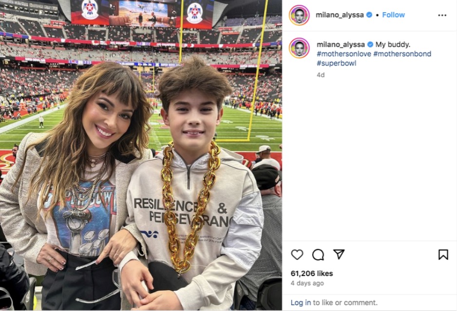 After photo emerges of Alyssa Milano and her son, 12, at the Super Bowl, fans spot detail that leaves people furious