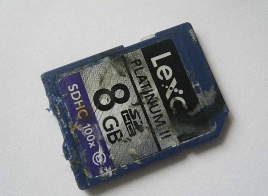 The Lexar Platinum II, 8 GB memory card miraculously still operational, allowed Côté to post online a family portrait found among the photos, hoping to locate the owner.