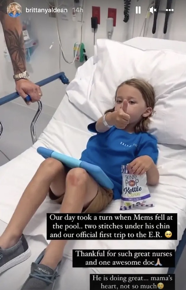 Mems’ fall in the pool changed the course of our day. Under his chin, two sutures, and our formal first visit to the emergency room. Posting on her Instagram story, Brittany Aldean wrote. I am grateful that I have such wonderful nurses and an amazing doctor. Although his mother isn’t happy, he’s doing fantastically.