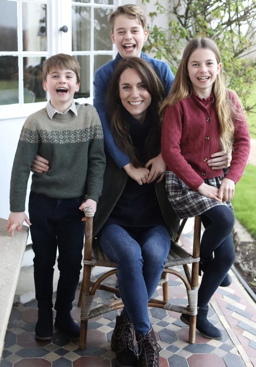 The image, which was taken by Prince William, showed Kate sitting on a chair in the garden with her arms around the young royals – all of them beaming.