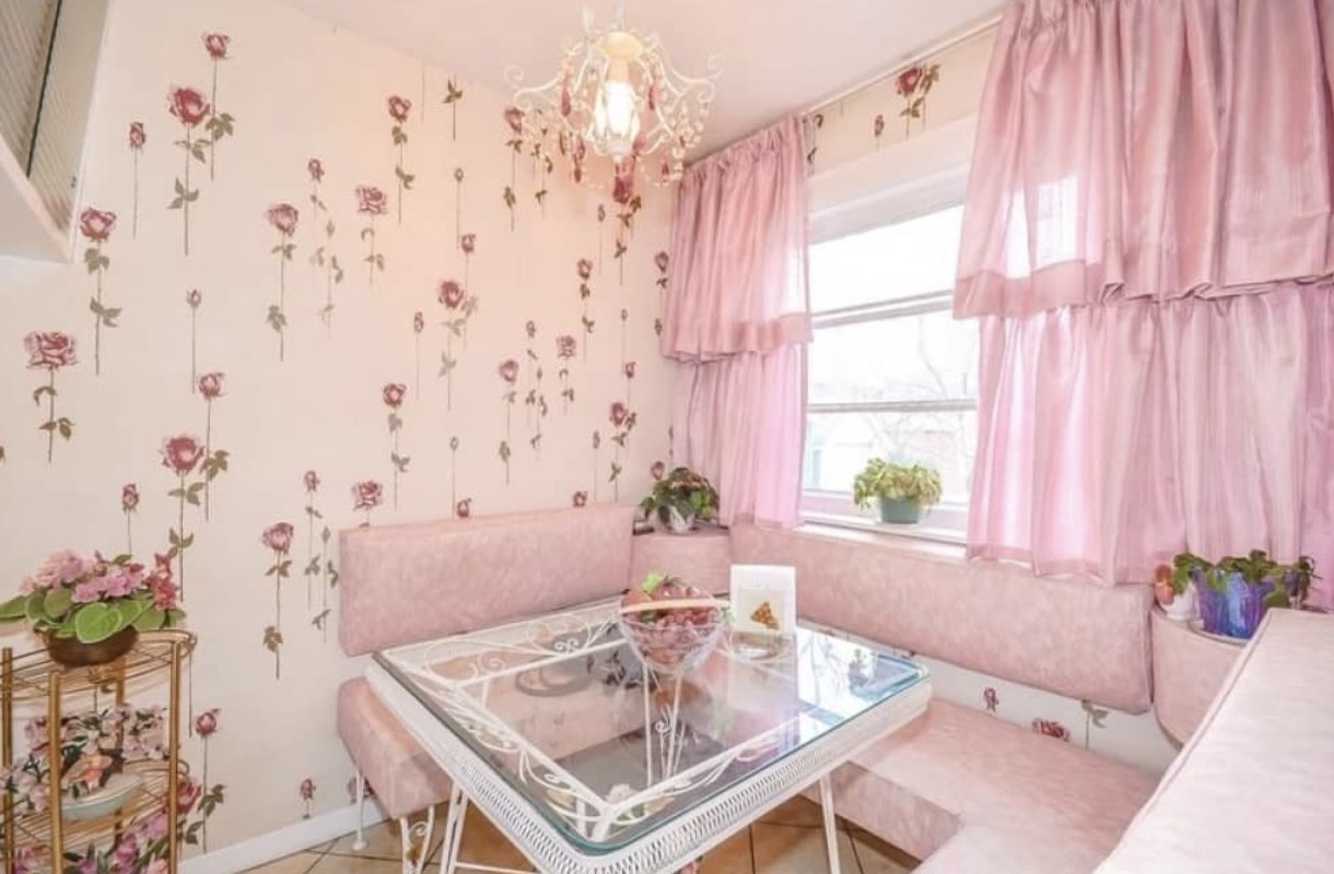 You can find pink accents or wallpapers in almost every room which makes you feel like this house belongs in a fairytale.