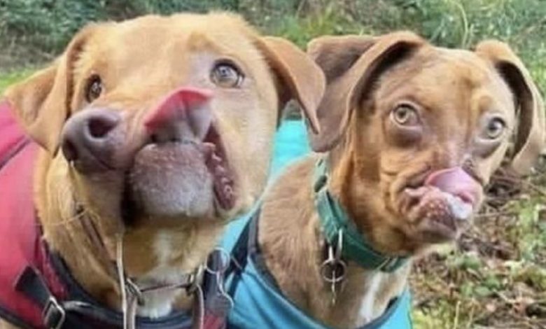 Picasso and Newt – 2 dogs that have facial deformities live with 53-year-old Founder and director of Luvable Dog Rescue Liesl Wilhardt on 55 acres of land at their home in Eugene, Oregon. Picasso was adopted by Liesl in 2017 following the tragic passing of his sibling Pablo, then Newt came into Liesl’s household in 2021. Now, these 2 canines are virtually inseparable, according to their owner.