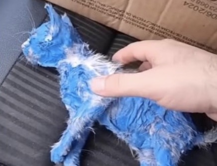 From Toxic Blue to Beautiful Hue: How Rescuers Transformed a Rain-Soaked Kitten