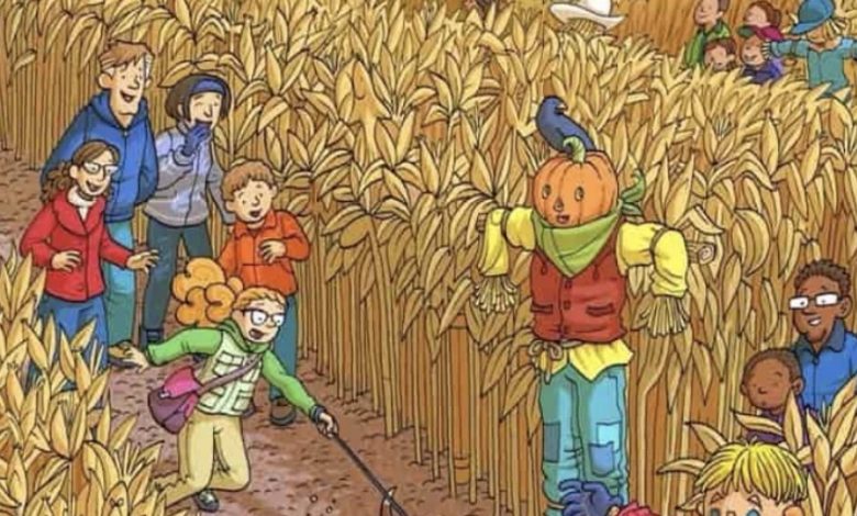The image presents a delightful scene of people enjoying playful activities in the enchanting cornfield. Yet, within this idyllic setting, a cleverly camouflaged fish lies hidden.