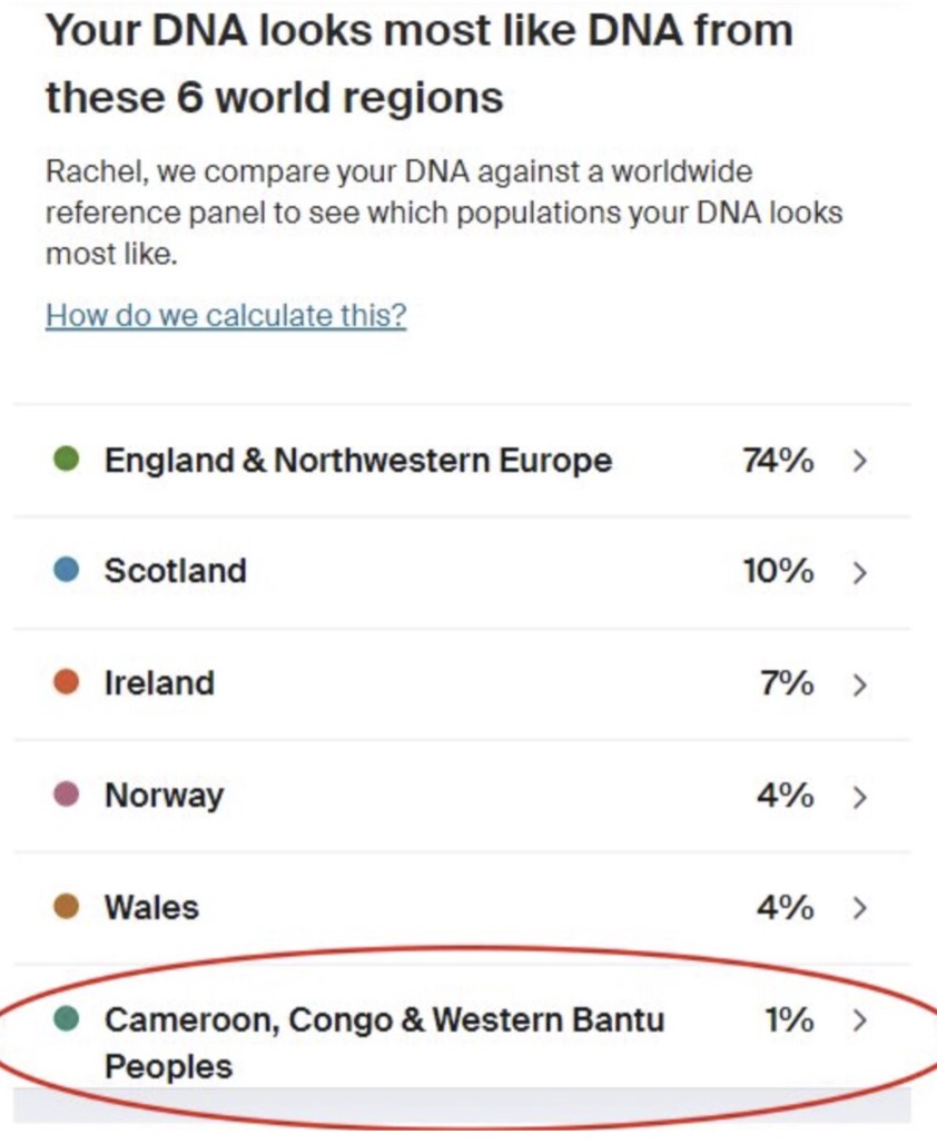 Rachel then decided to do something about it herself. To show her ancestry, she posted what she thought were her DNA results on Facebook.