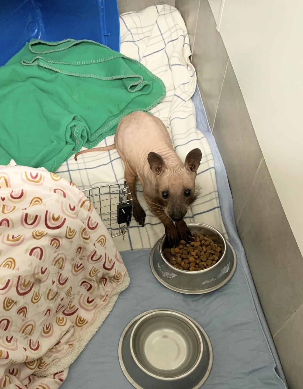 After being saved, an amazing creature that seemed like a hairless cat turned out to be an exceptional and unusual hairless raccoon. Let’s explore the tale of this unusual creature and her amazing survival!