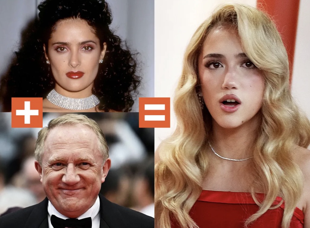 The internet personality boasts of an egg-shaped face reminiscent of Salma’s while inheriting blonde locks from François. The nose is a perfect fusion of both parents, marrying Salma’s delicate features with François-Henri’s distinguished profile.