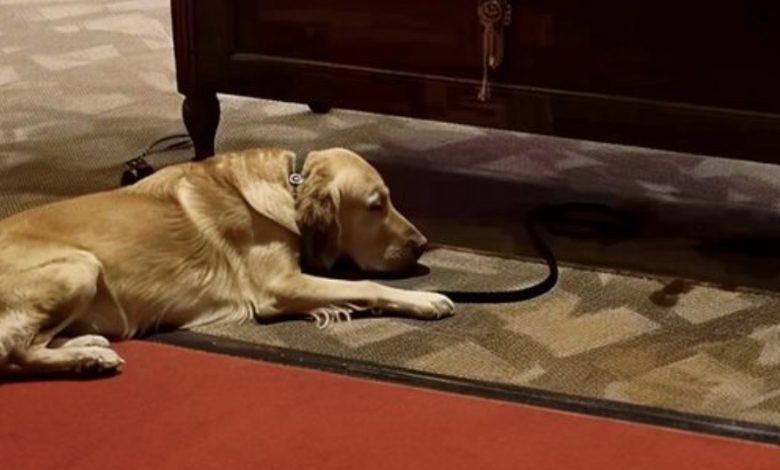 Just as the mass ended and mourners rose to sing the final hymn, Bella’s bark echoed through the church. She jumped on the casket, knocking the flower arrangement to the floor, and began barking loudly.