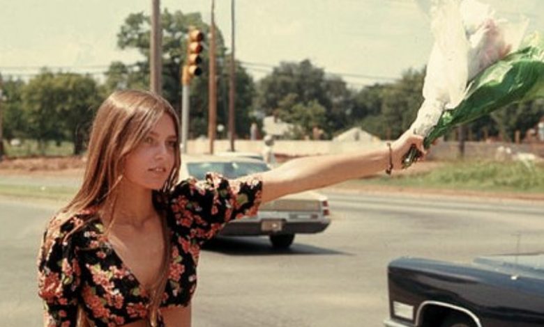 The Oklahoma photographs include serene pastoral settings, where flower children roam and a young girl sells flowers by the roadside, her innocence and the flowers’ bright colors standing out against the rural backdrop. These images not only add depth to the collection but also highlight the diverse cultural landscapes that existed cohesively during the 1970s.