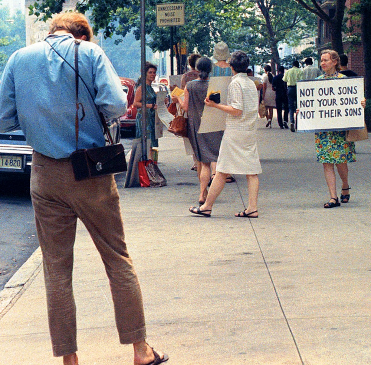Apart from the urban vibrancy of Pittsburgh, the collection reaches into the heartland of America, with several shots taken in Oklahoma. These photographs contrast sharply with the urban scenes, featuring serene images of hippies and a flower-selling girl. These characters embody the era’s spirit, with their free-spirited nature and peaceful demeanor, providing a stark juxtaposition to the urban intensity of Pittsburgh.