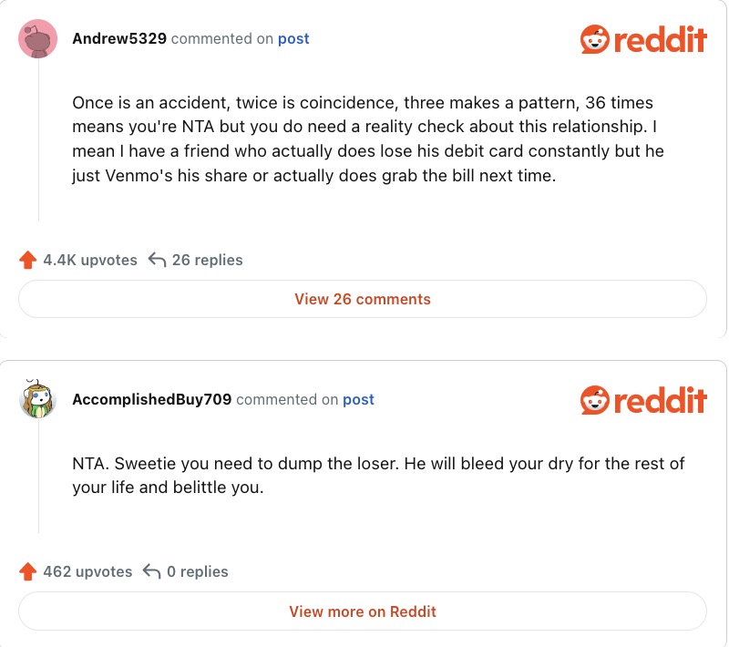 Initially, the woman was sympathetic and didn’t mind covering the expenses, recognizing that occasional forgetfulness could happen to anyone. However, as these incidents became a predictable occurrence, she noticed the financial strain it was causing her, especially after footing the bill for several expensive meals in a row.