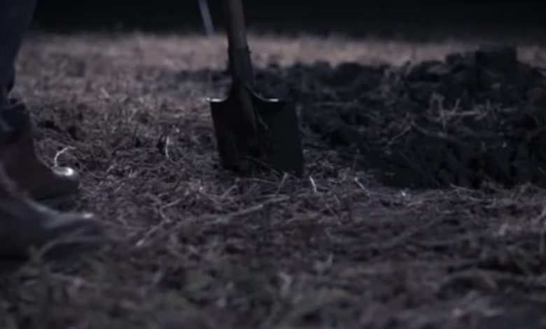 He was out there, digging a hole by the dim light of a flashlight. The scene was eerie, the only illumination coming from that narrow beam, casting long, sinister shadows.