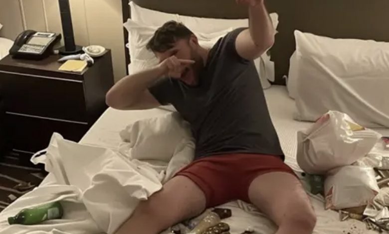 A few weeks after my last run-in with him, I was cleaning Room 805 again. The place was a mess, as usual—empty bottles scattered across the floor, sheets tangled in a pile, clothes thrown everywhere. I sighed, tying my hair back tighter as I started picking up after him. But today, something caught my eye.