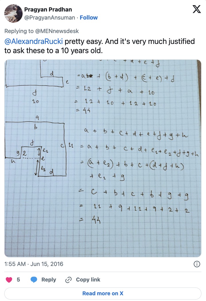 One person replied to the post with a complicated answer and sarcastically said, “It’s very much justified to ask these to a [ten-year-old].”