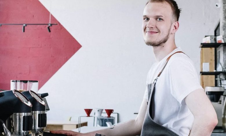 Just then, a customer walked in, looking unsure about what to order. Andrew stepped up and began chatting with him, suggesting drinks and pastries.