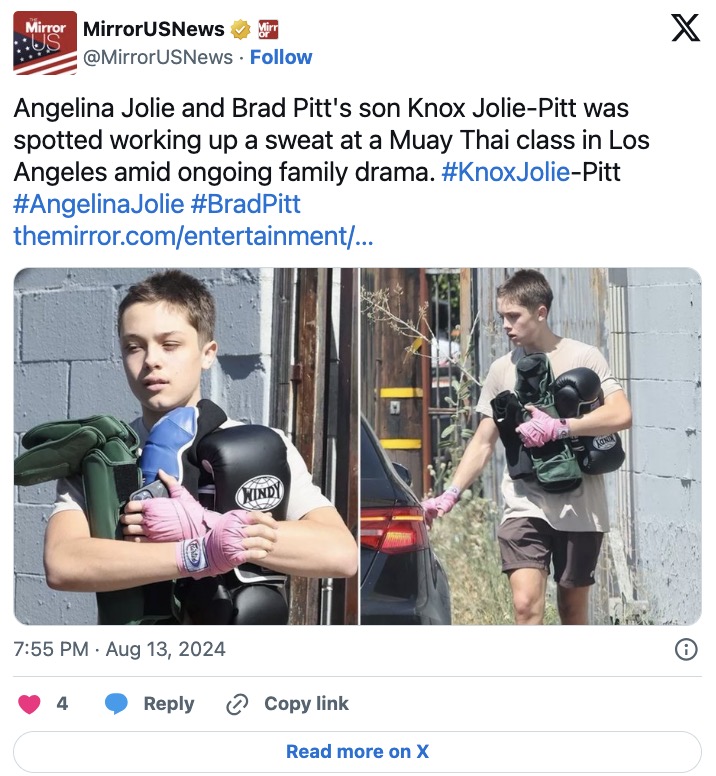 However, others believed that Knox was his father’s mini-me. “Good looking young man. So like his father. I hope he stays in contact with him,” one person shared. Another wrote, “Wow, he’s a Brad clone.”