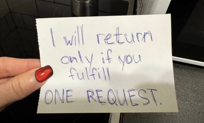 That’s exactly how I felt when I found that note from my husband, telling me he’d only return if I fulfilled “one request.”