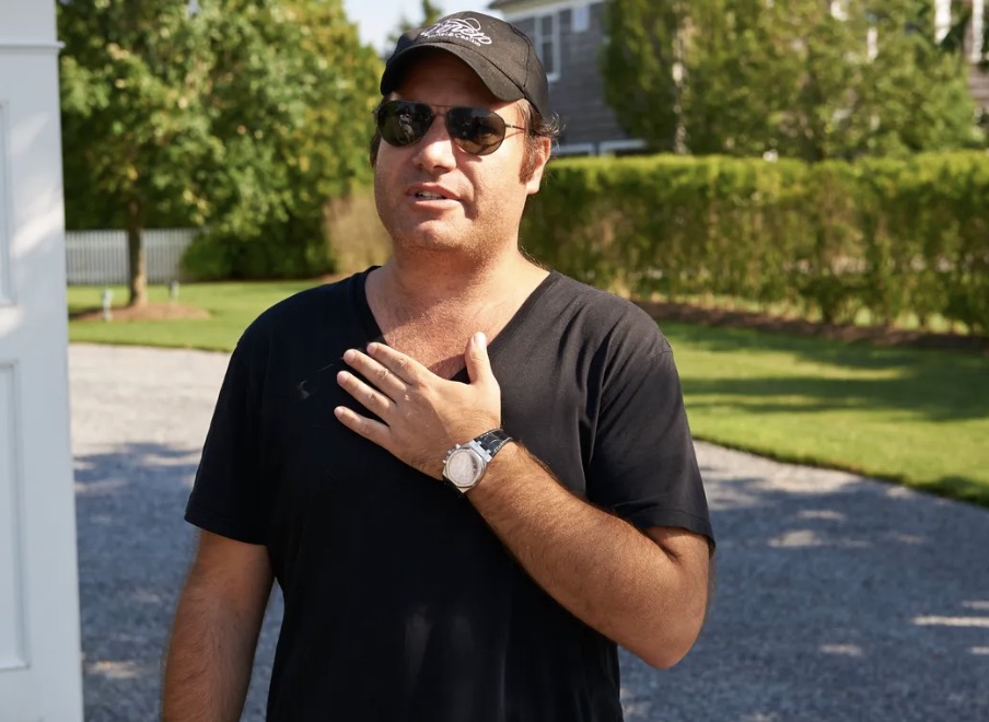 By October 2024, Eric’s father seemed to fully embrace a more laid-back lifestyle in London. In this photo, he is seen riding a bike while wearing a black puffer jacket and dark sunglasses. A subtle smile and his rugged salt-and-pepper beard add a mature edge, complemented by his neatly trimmed hair, completing his relaxed, outdoorsy appearance.