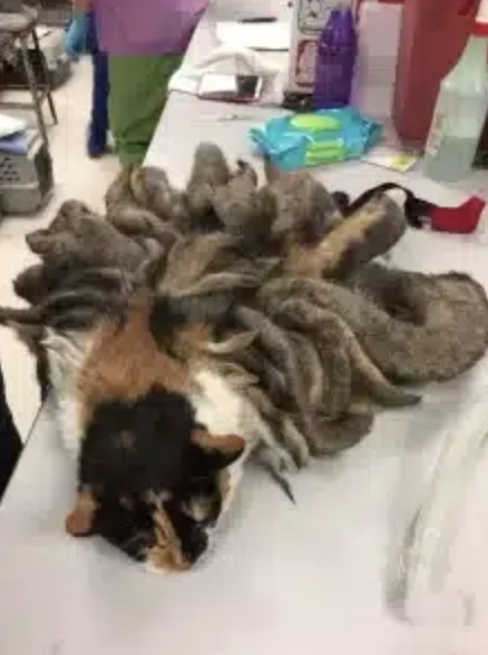When they found Hidey on the streets, they knew it was in dire straits. Cats are seen as independent, but some breeds need regular grooming. Hidey suffered neglect for years because her owner couldn’t groom her. Rescuers initially mistook her for an alien-like creature due to her matted fur.