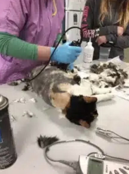Paul Russell, who stumbled upon her, said, “My god, this is a cat!”Hidey, a 14-year-old cat, was saved by an animal-loving couple and taken to the Animal Rescue League Shelter & Wildlife Center.