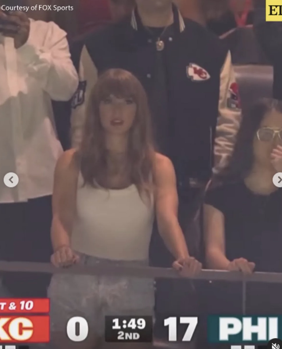 Dressed in an all-white outfit, Swift was initially seen excitedly engaging with her friends, including famous rapper Ice Spice and the Haim sisters, in the VIP section. However, as the Chiefs struggled against the Philadelphia Eagles and entered halftime scoreless, her mood reportedly took a more solemn turn.