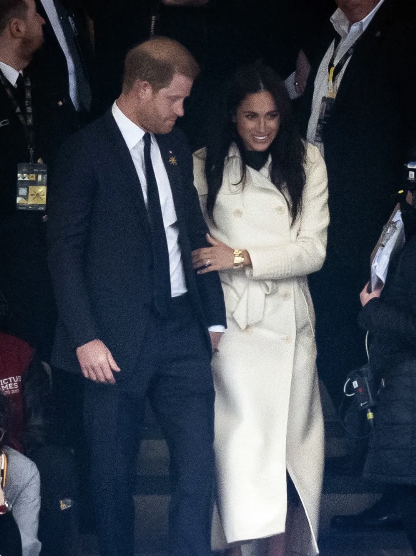 When attending events such as the Invictus Games, Meghan Markle often modifies her gestures to match the occasion. Instead of her usual hand-holding, she sometimes clasps Prince Harry’s bicep, a touch that James explained as a “surrendered” approval of his strength and leadership.