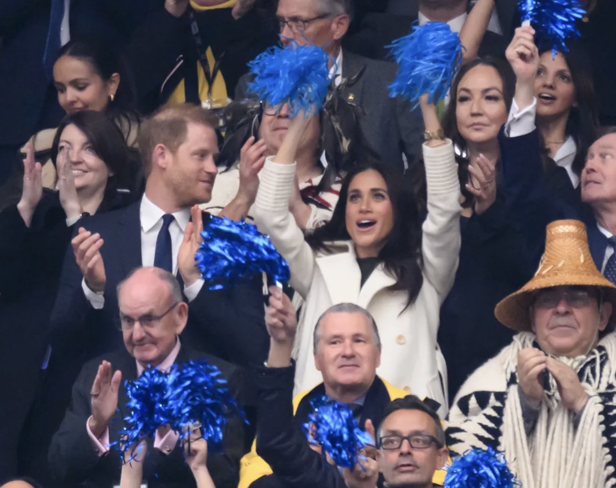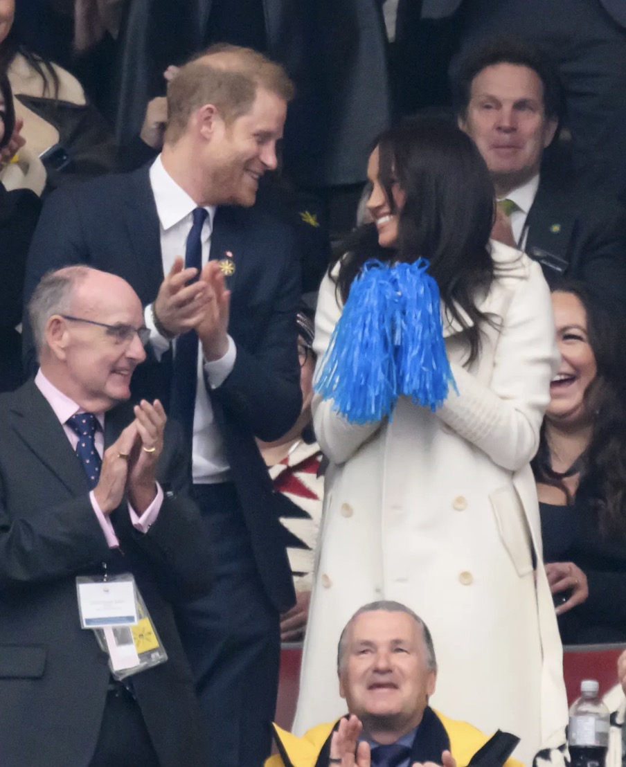 Markle’s enthusiasm remained evident as the evening progressed. She cheered alongside the audience, shook her pom-poms, and stayed physically close to Prince Harry.
