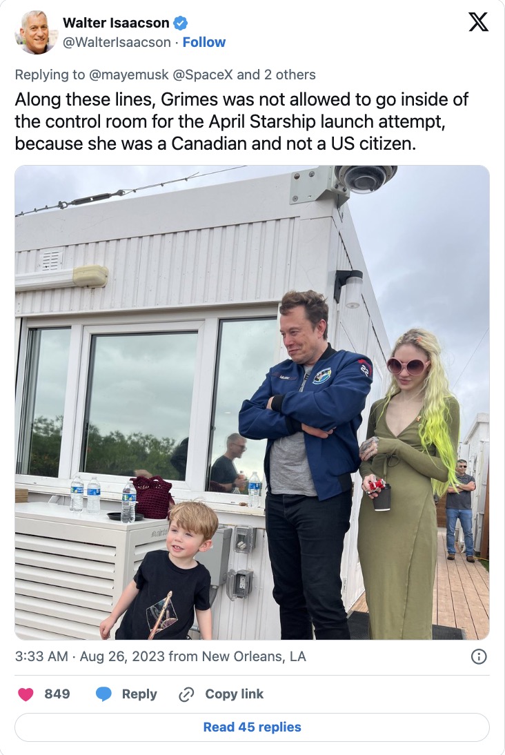 Grimes has spoken about X’s early curiosity about technology, sharing how he once became frustrated when his toy rocket’s design did not align with the real thing, even experiencing a “three-day meltdown” after watching a failed SpaceX rocket test.