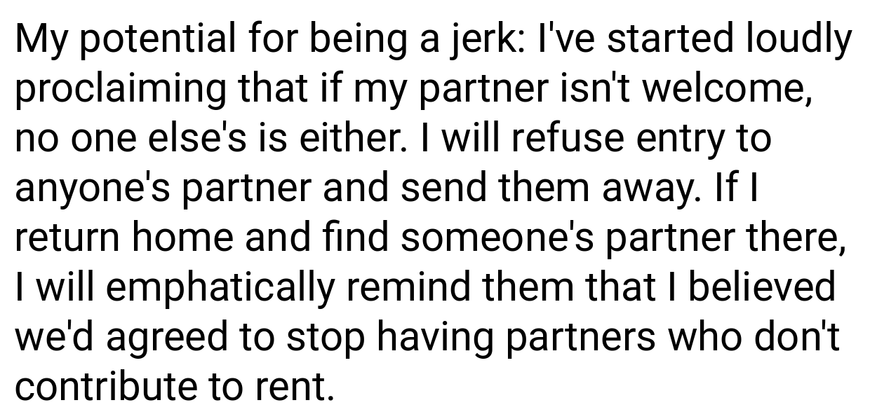 AITA for insisting if I can’t have my partner over, neither can anyone else?